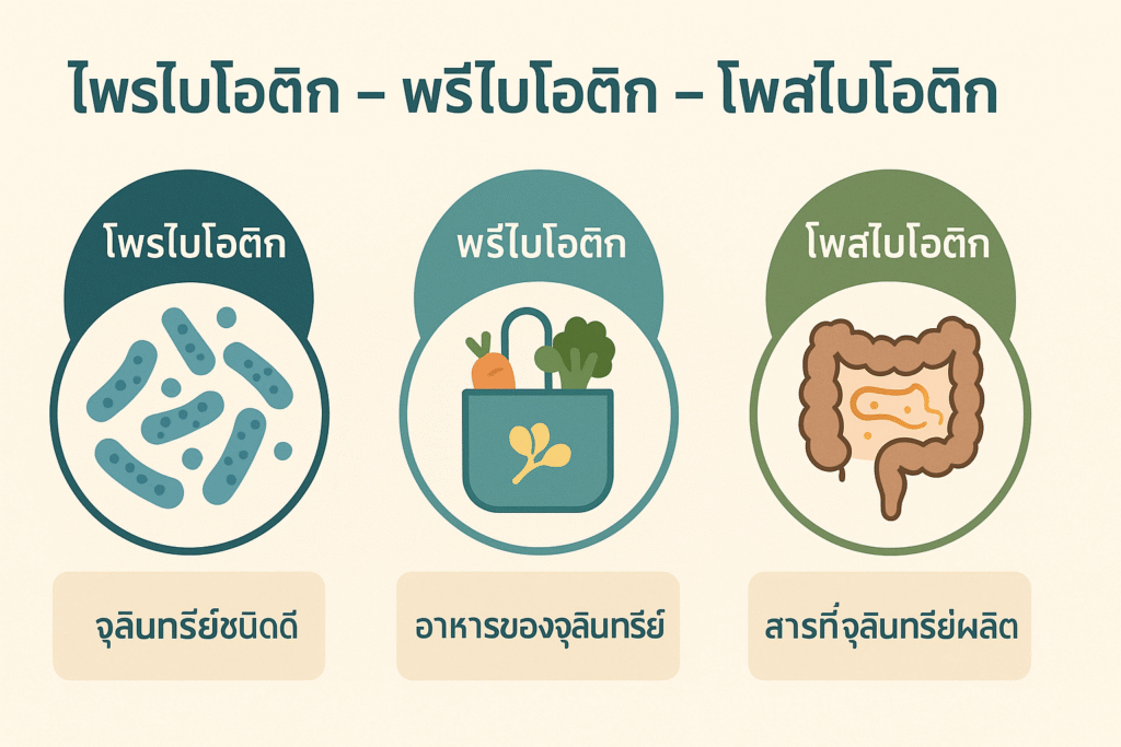 👉 ทั้ง 3 อย่างทำงานร่วมกันเหมือน “วงจรสุขภาพลำไส้”